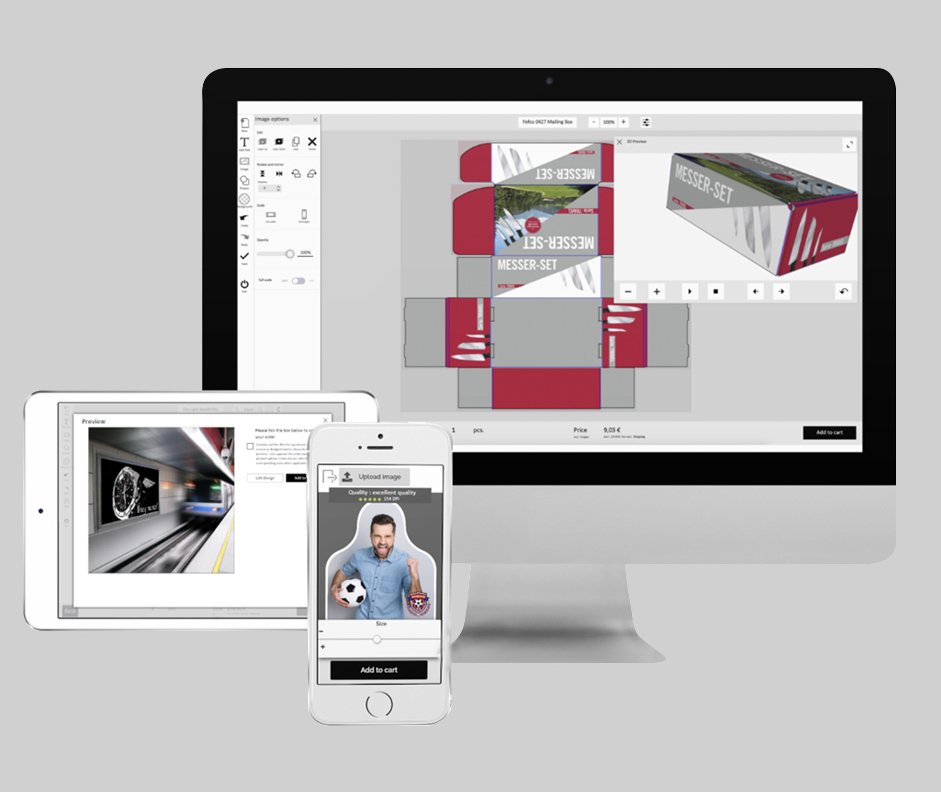 Mit dem Smart Shop bietet unser Partner Durst eine Web-to-Print-Lösung für den Grossformat-, Etiketten-, und Verpackungsmarkt. Der Durst Smart Shop ist skalierbar vom vorkonfigurierten Out-of-the-Box-Webshop bis hin zu einer individuellen Enterprise-E-Commerce-Plattform für verschiedene Vertriebskanäle: B2C-, B2B-, Open- und Closed-Shopsysteme.