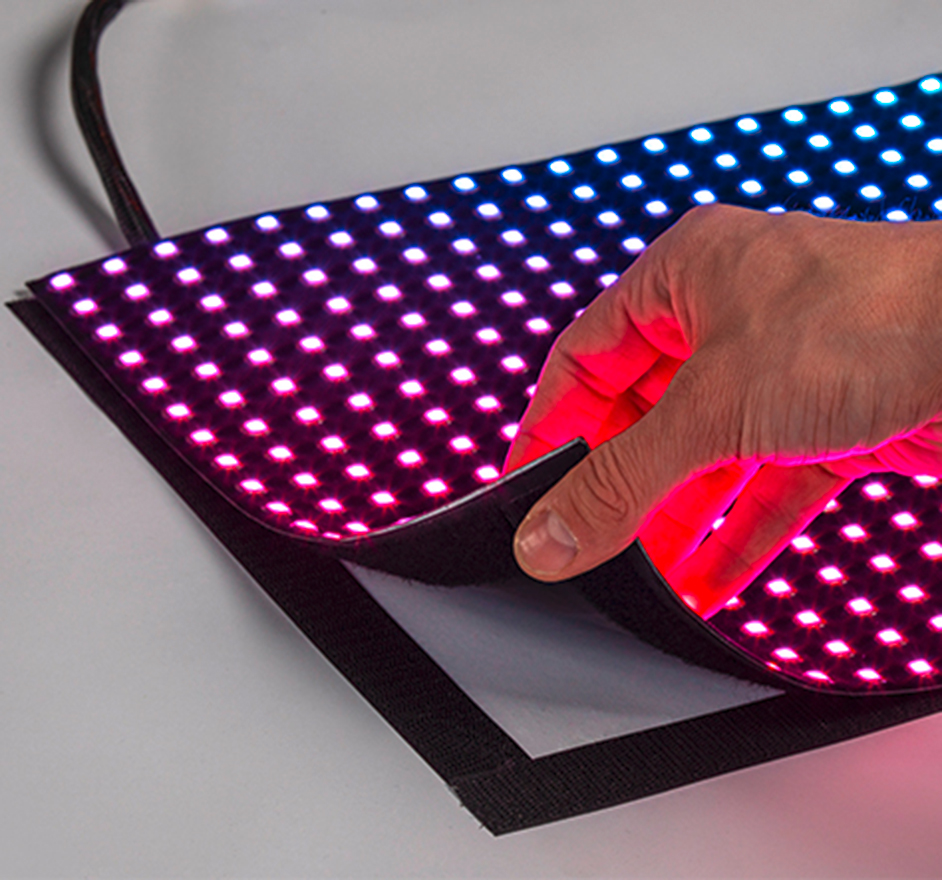 Le ledTec.flex | banner | p16 est une bâche LED très légère, fine et flexible. Elle convient aux applications extérieures avec un rendement en lumens élevé, une conception électronique efficace et un poids réduit. L’unité LED est extensible à l’infini pour les grands affichages vidéo.