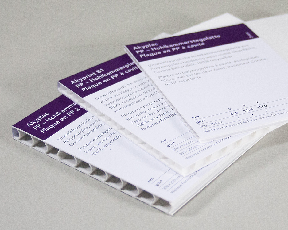 Les plaques alvéolaires Akyplac® disposent d'une surface blanche laiteuse permettant de réaliser des impressions recto-verso. Ces plaques en polypropylène, blanches, sont légères et durables. Elles constituent une solution idéale pour les displays, panneaux, outils de merchandising et emballages. Elles offrent une véritable alternative écologique aux emballages et aux supports publicitaires classiques.